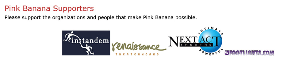 Sadly the demise of the Pink Banana Theatre Company occurred two months after their 2015, 11th annual Pink Banana Theatre Company festival of one-act plays. This was their website circa 2007- 2011. Content has been provided from the site's achieved pages. Enjoy the nostalgic stroll.